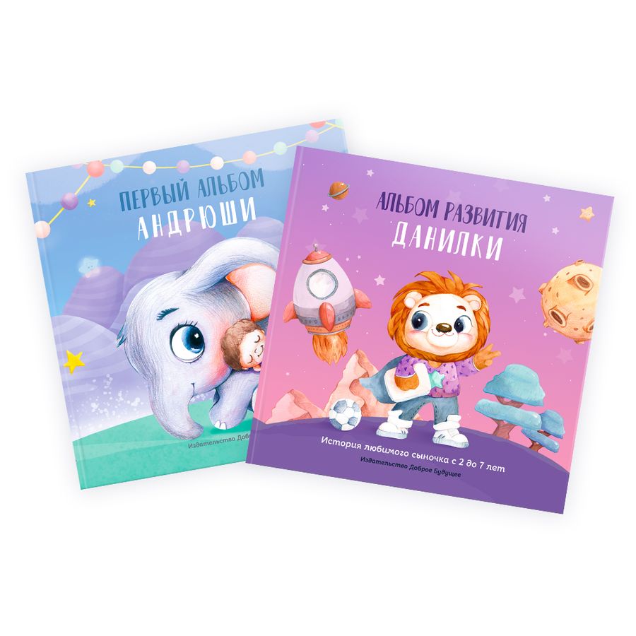 Именной альбом развития от 2 до 7 лет станет продолжением первой книги и сохранит все первые победы сыночка. Это уникальная космическая книга, главный герой которой – ваш малыш. В образе отважного львёнка он отправится в космическое путешествие, где его с нетерпением ждут Планеты Семьи и Творчества, Планеты Спорта, Танцев, Приключений и Друзей и др.